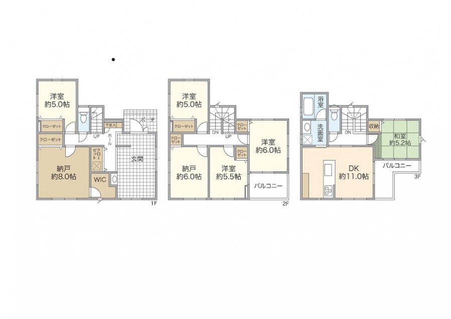 - ■7DKでゆったり間取の3階建て ■カースペース3台可 ■大きな土間がある広々玄関